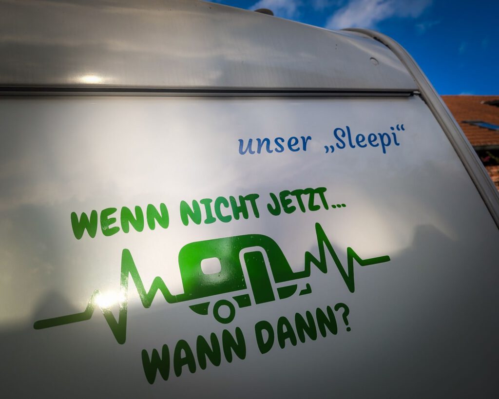 Alles wunderbare Dinge, die mein “neues“ Leben noch einmal weiter umgekrempelt haben. Alles wunderbar, so weit so gut. Aber dennoch beschlich mich in letzter Zeit ein Gefühl von drückender Stimmung, die mir nicht wirklich erklärbar war, es kam eher wieder aus dem Inneren heraus, konnte es nicht wegdrängen, aber auch nicht wirklich fassen. Habe es erstmal ignoriert. Außerdem merkte ich schon seit einiger Zeit, wie es mir immer wieder beim Betrachten von Fotos von Sybille danach war, diese im Augenblick genug gesehen zu haben und ich wollte auch nicht immer Sylvia mit den Bildern konfrontieren. Das offen anzusprechen war aber (noch) nicht die Zeit. Irgendwie zog mich das aber immer mehr herunter, bis ich doch mit Sylvia sprach. Auch ihr ging das ähnlich mit den Fotos. Wir wollen beide nicht unsere Geschichte verdrängen, aber irgendwie scheint die Zeit dafür zu sein, aktiv zu werden und ein bisschen aufzuräumen. Das Reden darüber tat uns beiden schon einmal gut und ich hoffe mal, mein Tief durch Taten zu überwinden. Ich spüre derzeit schon eine Erleichterung. Das schlechte Gewissen, Sybille mit dieser “Tat” zu treffen ist natürlich völlig absurd, aber was die Seele da mit mir machte, will ich begreifen und Initiative ergreifen, etwas zu ändern. Ich muss und will da an mich denken. Das Leben geht weiter und Sybilles Position in meinem Leben wird sich nicht mehr ändern, sie war schließlich der große Teil von mir, nun ist das Sylvia. Gerade haben wir uns einen Aufkleber für unseren Wohnwagen bestellt mit dem Satz, der zu unserm Motto geworden ist: “Wenn nicht jetzt…wann dann?“
